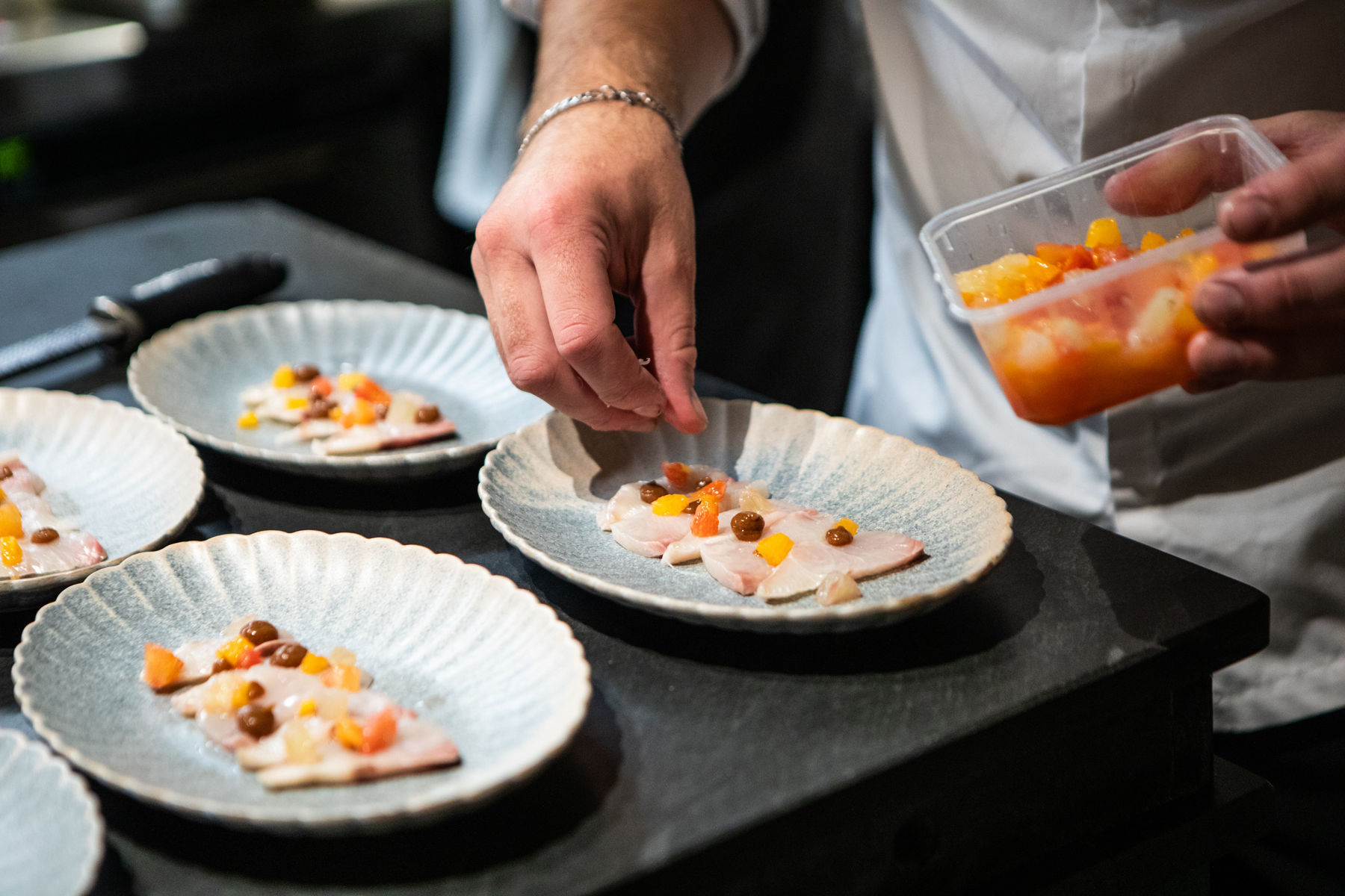 Pierre Lorenzo from Peixes and Nicolas Leclair from Toile Blanche join forces to create an all-fish menu.